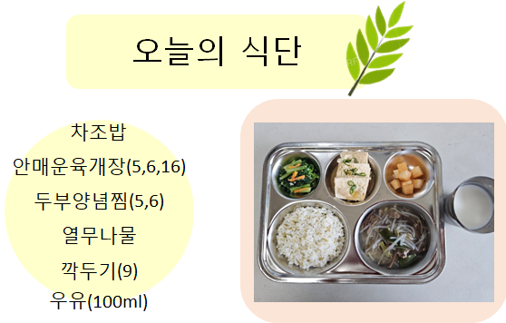 2025년 9월 4일 오늘의 식단 페이지 정보 작성자 슬기유치원 작성일25-09-04 15:29 조회2,442회 댓글0건 관련링크 이전글 다음글 목록 본문 2025년 9월 4일 오늘의 식단 댓글목록 등록된 댓글이 없습니다. 이전글 다음글 목록