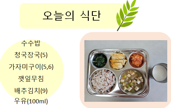 2025년 9월 5일 오늘의 식단 페이지 정보 작성자 슬기유치원 작성일25-09-05 15:35 조회2,433회 댓글0건 관련링크 이전글 다음글 목록 본문 2025년 9월 5일 오늘의 식단 댓글목록 등록된 댓글이 없습니다. 이전글 다음글 목록