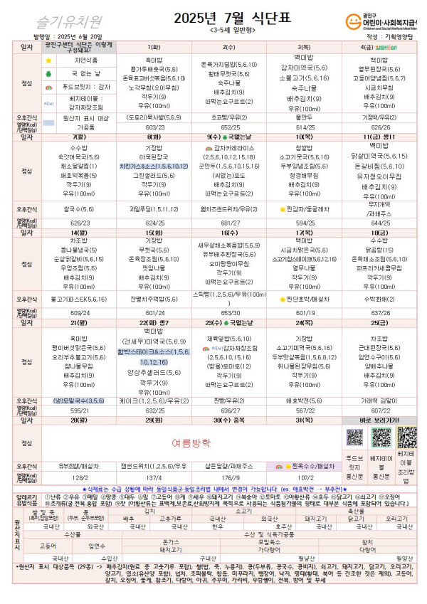 ★ 2025년 7월 식단표 ★