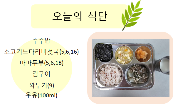 2025년 6월 26일 오늘의 식단 페이지 정보 작성자 슬기유치원 작성일25-06-26 15:05 조회3,341회 댓글0건 관련링크 이전글 다음글 목록 본문 2025년 6월 26일 오늘의 식단 댓글목록 등록된 댓글이 없습니다. 이전글 다음글 목록