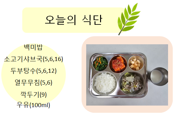 2025년 5월 15일 오늘의 식단 페이지 정보 작성자 슬기유치원 작성일25-05-15 15:56 조회3,804회 댓글0건 관련링크 이전글 다음글 목록 본문 2025년 5월 15일 오늘의 식단 댓글목록 등록된 댓글이 없습니다. 이전글 다음글 목록