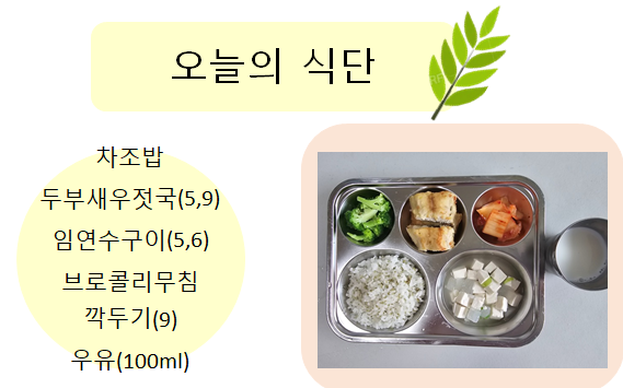 2025년 5월 9일 오늘의 식단 페이지 정보 작성자 슬기유치원 작성일25-05-09 15:12 조회4,482회 댓글0건 관련링크 이전글 다음글 목록 본문 2025년 5월 9일 오늘의 식단 댓글목록 등록된 댓글이 없습니다. 이전글 다음글 목록