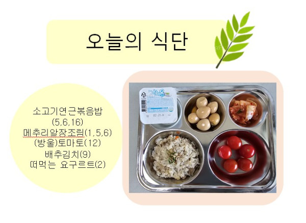 2025년 2월 18일 오늘의 식단 페이지 정보 작성자 슬기유치원 작성일25-02-18 12:29 조회5,041회 댓글0건 관련링크 이전글 다음글 목록 본문 댓글목록 등록된 댓글이 없습니다. 이전글 다음글 목록