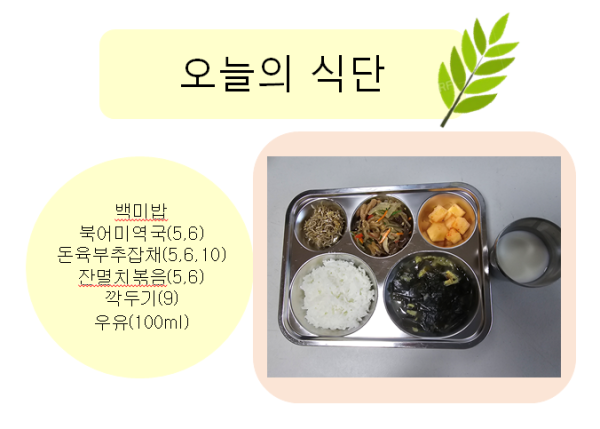 2024년 10월 18일 오늘의 식단 페이지 정보 작성자 슬기유치원 작성일24-10-18 12:18 조회6,446회 댓글0건 관련링크 이전글 다음글 목록 본문 댓글목록 등록된 댓글이 없습니다. 이전글 다음글 목록