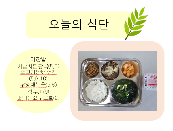 2024년 10월 23일 오늘의 식단 페이지 정보 작성자 슬기유치원 작성일24-10-23 13:09 조회6,453회 댓글0건 관련링크 이전글 다음글 목록 본문 댓글목록 등록된 댓글이 없습니다. 이전글 다음글 목록