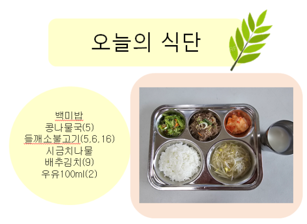 2024년 9월 26일 오늘의 식단 페이지 정보 작성자 슬기유치원 작성일24-09-26 13:12 조회6,620회 댓글0건 관련링크 이전글 다음글 목록 본문 *시금치 수급 사정으로 상추로 대체 댓글목록 등록된 댓글이 없습니다. 이전글 다음글 목록