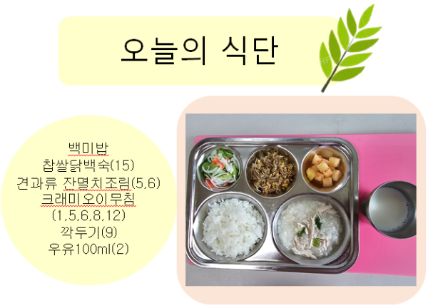 2024년 7월 15일 오늘의 식단 페이지 정보 작성자 슬기유치원 작성일24-07-15 13:12 조회6,932회 댓글0건 관련링크 이전글 다음글 목록 본문 댓글목록 등록된 댓글이 없습니다. 이전글 다음글 목록
