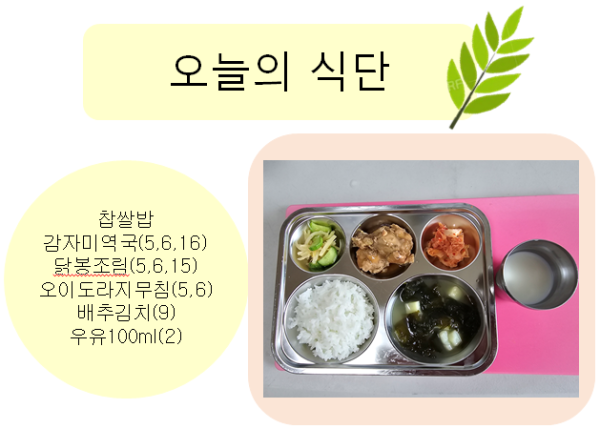 2024년 7월 5일 오늘의 식단 페이지 정보 작성자 슬기유치원 작성일24-07-05 12:10 조회6,884회 댓글0건 관련링크 이전글 다음글 목록 본문 댓글목록 등록된 댓글이 없습니다. 이전글 다음글 목록