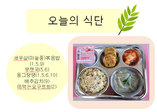 2024년 5월 22일 오늘의 식단 페이지 정보 작성자 슬기유치원 작성일24-05-22 12:39 조회7,059회 댓글0건 관련링크 이전글 다음글 목록 본문 댓글목록 등록된 댓글이 없습니다. 이전글 다음글 목록