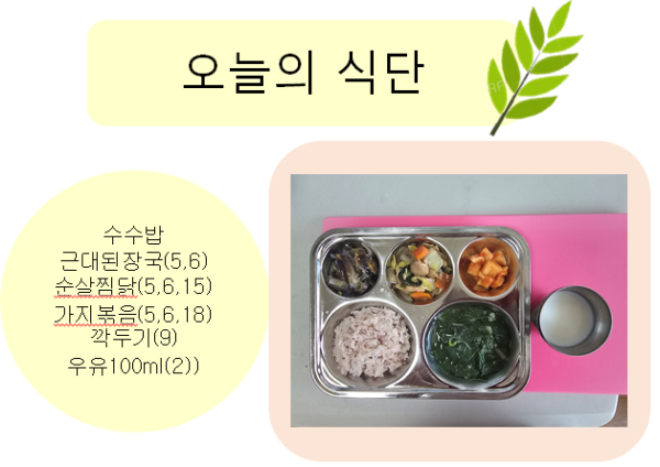 2024년 5월 13일 오늘의 식단 페이지 정보 작성자 슬기유치원 작성일24-05-13 13:58 조회7,057회 댓글0건 관련링크 이전글 다음글 목록 본문 댓글목록 등록된 댓글이 없습니다. 이전글 다음글 목록