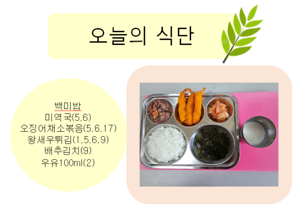 2024년 4월 9일 오늘의 식단 페이지 정보 작성자 슬기유치원 작성일24-04-09 13:02 조회7,207회 댓글0건 관련링크 이전글 다음글 목록 본문 댓글목록 등록된 댓글이 없습니다. 이전글 다음글 목록