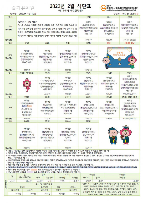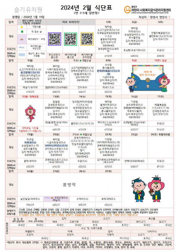 ★ 2024년 2월 식단표 ★ 페이지 정보 작성자 슬기유치원 작성일24-01-29 07:52 조회7,495회 댓글0건 관련링크 이전글 다음글 목록 본문 ★ 2024년 2월 식단표 ★ 댓글목록 등록된 댓글이 없습니다. 이전글 다음글 목록