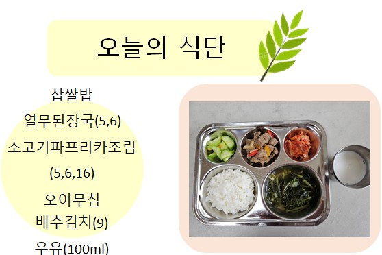 2026년 1월 15일 오늘의 식단 페이지 정보 작성자 슬기유치원 작성일26-01-15 15:57 조회892회 댓글0건 관련링크 이전글 다음글 목록 본문 2026년 1월 15일 오늘의 식단 댓글목록 등록된 댓글이 없습니다. 이전글 다음글 목록