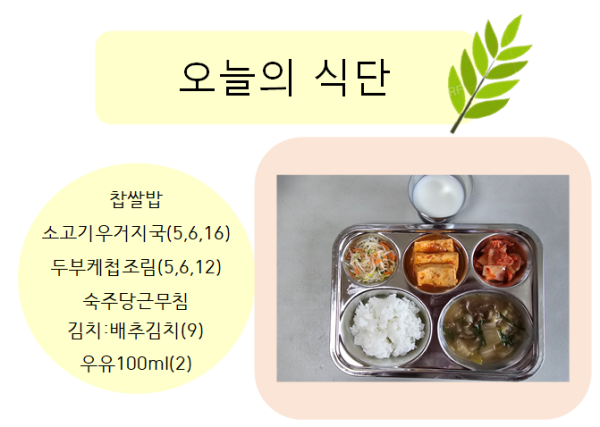 2024년 1월 4일 오늘의 식단 페이지 정보 작성자 슬기유치원 작성일24-01-08 13:54 조회7,599회 댓글0건 관련링크 이전글 다음글 목록 본문 댓글목록 등록된 댓글이 없습니다. 이전글 다음글 목록