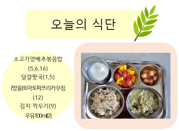 2023년 11월 22일 오늘의 식단 페이지 정보 작성자 슬기유치원 작성일23-11-22 13:06 조회7,909회 댓글0건 관련링크 이전글 다음글 목록 본문 댓글목록 등록된 댓글이 없습니다. 이전글 다음글 목록