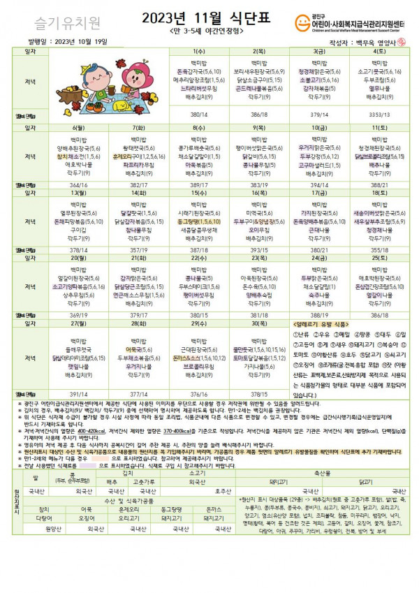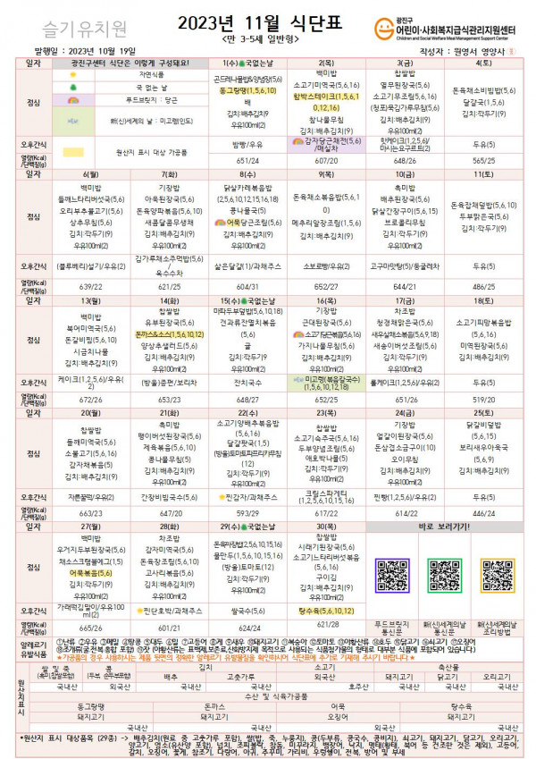 ★ 2023년 11월 식단표 ★ 페이지 정보 작성자 슬기유치원 작성일23-11-01 13:02 조회7,733회 댓글0건 관련링크 이전글 다음글 목록 본문 ★ 2023년 11월 식단표 ★ 댓글목록 등록된 댓글이 없습니다. 이전글 다음글 목록