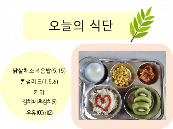 2023년 10월 18일 오늘의 식단 페이지 정보 작성자 슬기유치원 작성일23-10-19 08:13 조회7,785회 댓글0건 관련링크 이전글 다음글 목록 본문 댓글목록 등록된 댓글이 없습니다. 이전글 다음글 목록