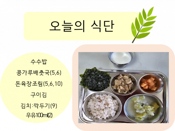2023년 10월 20일 오늘의 식단 페이지 정보 작성자 슬기유치원 작성일23-10-20 14:08 조회7,742회 댓글0건 관련링크 이전글 다음글 목록 본문 댓글목록 등록된 댓글이 없습니다. 이전글 다음글 목록