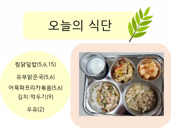 2023년 9월 13일 오늘의 식단 페이지 정보 작성자 슬기유치원 작성일23-09-14 14:50 조회7,779회 댓글0건 관련링크 이전글 다음글 목록 본문 댓글목록 등록된 댓글이 없습니다. 이전글 다음글 목록
