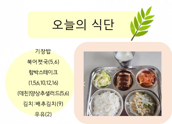 2023년 9월 21일 오늘의 식단 페이지 정보 작성자 슬기유치원 작성일23-09-22 12:18 조회7,927회 댓글0건 관련링크 이전글 다음글 목록 본문 댓글목록 등록된 댓글이 없습니다. 이전글 다음글 목록