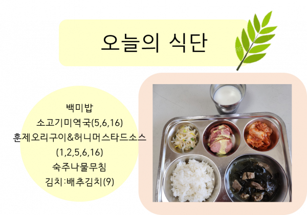2023년 9월 6일 오늘의 식단 페이지 정보 작성자 슬기유치원 작성일23-09-06 17:11 조회7,904회 댓글0건 관련링크 이전글 다음글 목록 본문 댓글목록 등록된 댓글이 없습니다. 이전글 다음글 목록