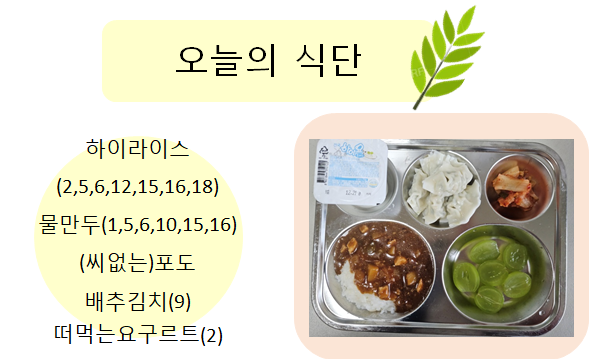 2025년 12월 10일 오늘의 식단 페이지 정보 작성자 슬기유치원 작성일25-12-10 15:09 조회1,224회 댓글0건 관련링크 이전글 다음글 목록 본문 2025년 12월 10일 오늘의 식단 댓글목록 등록된 댓글이 없습니다. 이전글 다음글 목록