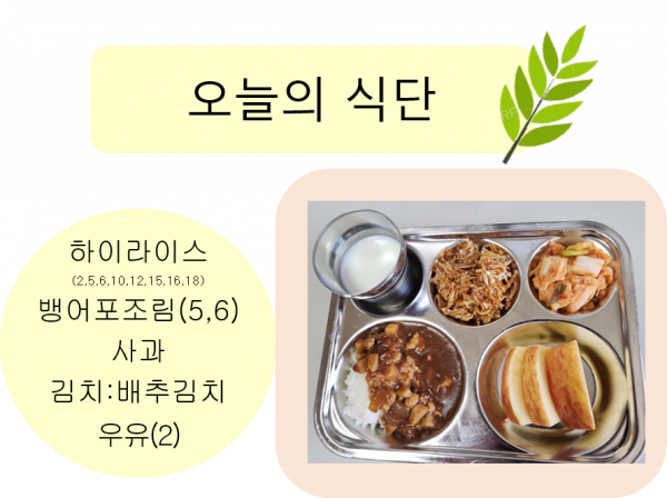 2023년 5월 17일 오늘의 식단 페이지 정보 작성자 슬기유치원 작성일23-05-17 18:04 조회8,352회 댓글0건 관련링크 이전글 다음글 목록 본문 댓글목록 등록된 댓글이 없습니다. 이전글 다음글 목록