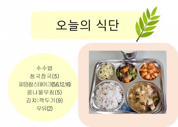 2023년 5월 18일 오늘의 식단 페이지 정보 작성자 슬기유치원 작성일23-05-19 10:52 조회8,333회 댓글0건 관련링크 이전글 다음글 목록 본문 댓글목록 등록된 댓글이 없습니다. 이전글 다음글 목록