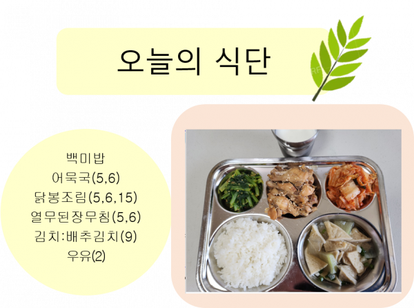 2023년 5월 8일 오늘의 식단 페이지 정보 작성자 슬기유치원 작성일23-05-08 14:12 조회8,345회 댓글0건 관련링크 이전글 다음글 목록 본문 댓글목록 등록된 댓글이 없습니다. 이전글 다음글 목록