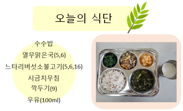 2025년 12월 4일 오늘의 식단 페이지 정보 작성자 슬기유치원 작성일25-12-05 15:54 조회1,370회 댓글0건 관련링크 이전글 다음글 목록 본문 2025년 12월 4일 오늘의 식단 댓글목록 등록된 댓글이 없습니다. 이전글 다음글 목록