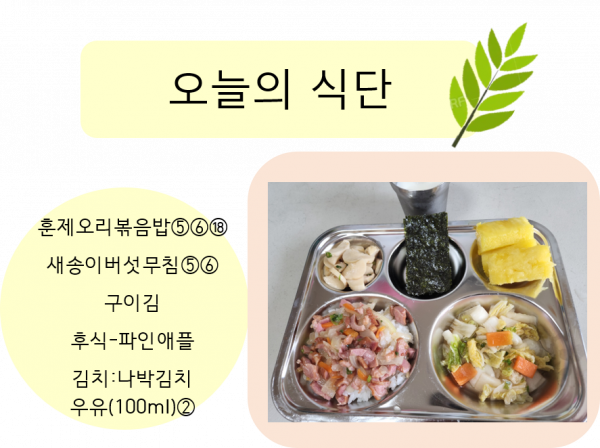 2022년 8월 03일 오늘의 식단 페이지 정보 작성자 슬기유치원 작성일22-08-03 17:26 조회8,743회 댓글0건 관련링크 이전글 다음글 목록 본문 댓글목록 등록된 댓글이 없습니다. 이전글 다음글 목록