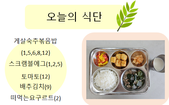 2025년 9월 18일 오늘의 식단 페이지 정보 작성자 슬기유치원 작성일25-09-18 16:32 조회2,111회 댓글0건 관련링크 이전글 다음글 목록 본문 2025년 9월 18일 오늘의 식단 댓글목록 등록된 댓글이 없습니다. 이전글 다음글 목록
