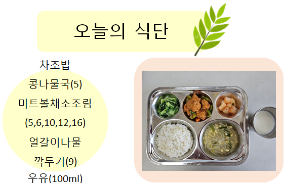 2025년 9월 23일 오늘의 식단 페이지 정보 작성자 슬기유치원 작성일25-09-23 15:10 조회2,104회 댓글0건 관련링크 이전글 다음글 목록 본문 2025년 9월 23일 오늘의 식단 댓글목록 등록된 댓글이 없습니다. 이전글 다음글 목록