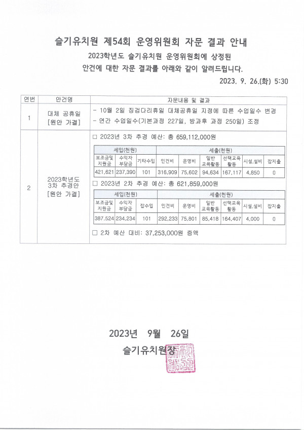 제54회 운영위원회 자문 결과 안내