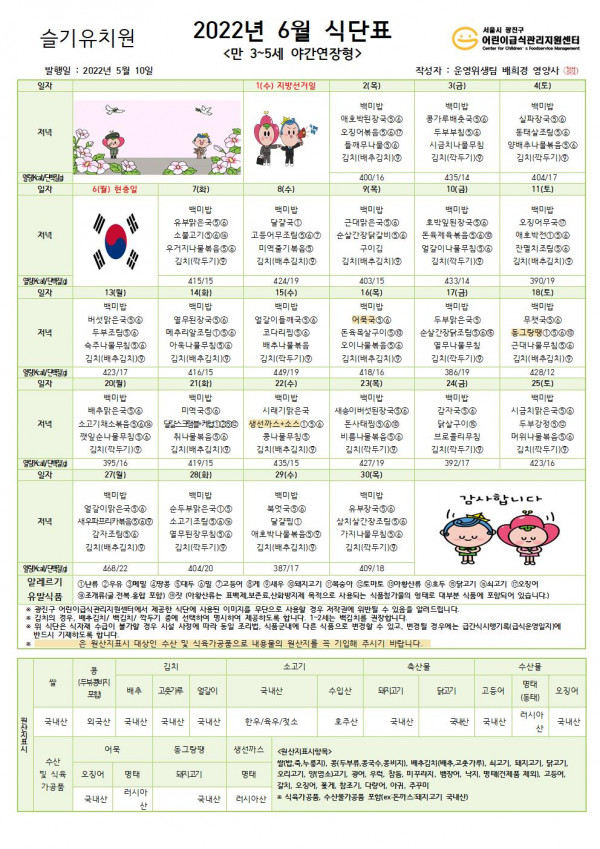 ★ 2022년 6월 식단표 ★ 페이지 정보 작성자 슬기유치원 작성일22-05-31 14:15 조회7,334회 댓글0건 관련링크 이전글 다음글 목록 본문 ★ 2022년 6월 식단표 ★ 댓글목록 등록된 댓글이 없습니다. 이전글 다음글 목록