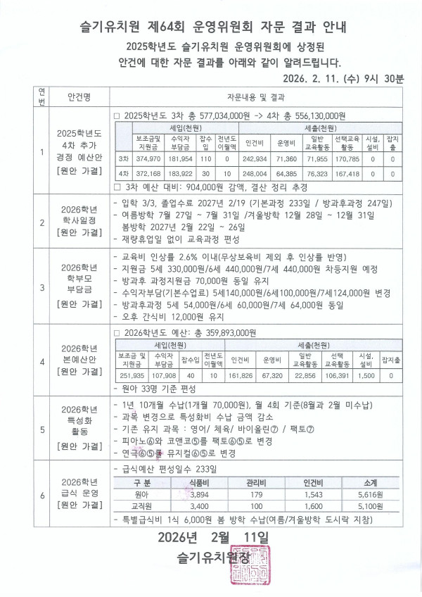 (운영위)64회 운영위원회 결과 안내